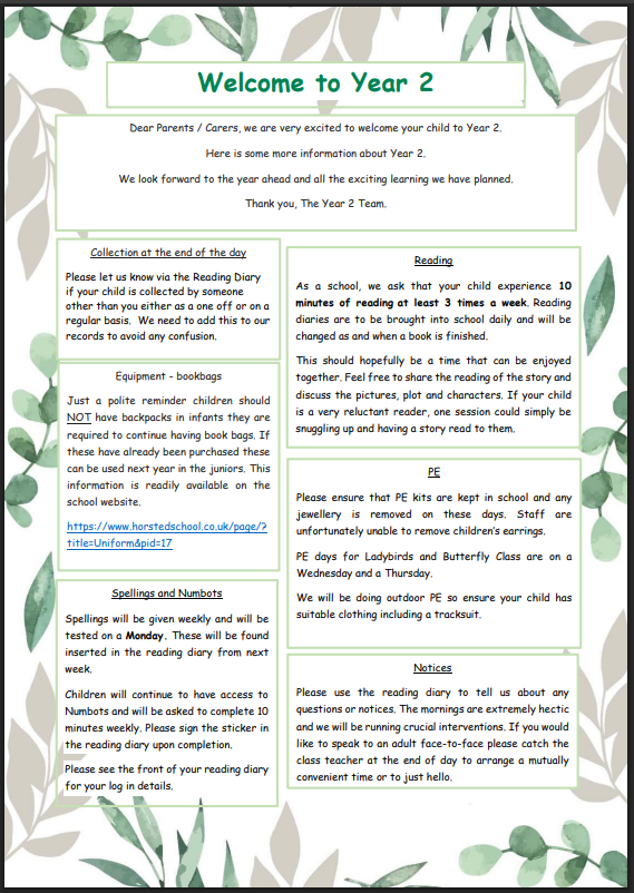 Please ensure earrings are removed on these days, hair is tied up and the children have a clearly labelled PE kit in school.